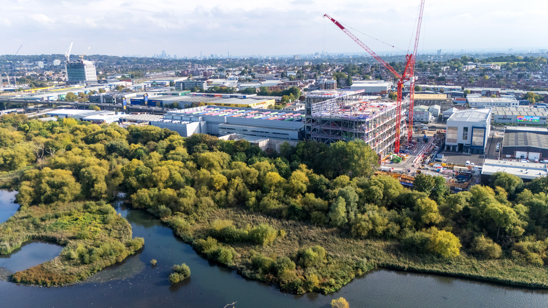 The site has planning permission for what will be one of the world’s largest living walls. Over 750,000 plants will wrap around Building 2 to reduce noise and air pollution, as well as encourage biodiversity of insects and birds next to Brent Reservoir’s Site of Special Scientific Interest (SSSI).